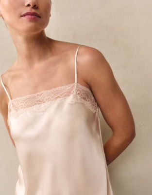 A sophisticated choice our luxurious pure-silk nightdress is made even lovelier with a flattering square neckline and detailed lace trim. It has delicate and fully adjustable straps and a straight back for a customized fit too.