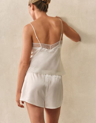 Look forward to bedtime with our incredibly soft silk pyjamas featuring a flattering square neckline and detailed with a lace trim.