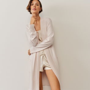 Designed to be worn with our pure-silk pyjamas and nighties this elegant silk robe is maxi length and features a piped shawl collar and wide sleeves. With a self-tie fabric belt this sophisticated style can be cinched in for a flattering silhouette. Add a silk eye mask for the full luxe experience. The ivory colourway makes a lovely bridal option too. All our silk nightwear is a luxurious 19 momme. Momme refers to the weight of silk - the higher the momme the heavier and more premium the silk.