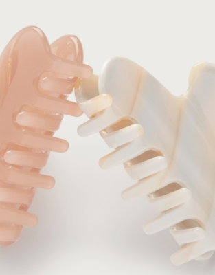One is pink and the other is a cream-coloured resin. Perfect for everyday hairstyling they're great for keeping sections of your hair up and off your face.