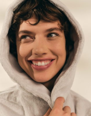 Comforting cocooning and unbeatably cosy the fluffy fabric is like a warm hug on a chilly evening and the hood is extra plush for you to burrow into.