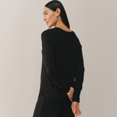A festive update on our much-loved crew-neck jumper. It's made from a recycled-cotton blend embellished with sparkling Angelina yarn that gives it an all-over-glitter effect. A simple crew neck and ribbed trims at the cuffs and hem give it a classic feel. This jumper is easy to dress up with a satin skirt or keep it casual with jeans for a little festive flair.