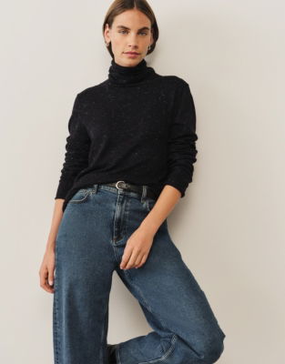 A festive update on our much-loved funnel-neck jumper. It's made from a recycled-cotton blend embellished with sparkling Angelina yarn that gives it an all-over-glitter effect. A really loose funnel neck and rolled edges at the cuffs and hem give it a modern feel. This jumper is easy to dress up with a satin skirt or keep it casual with jeans for a little festive flair.