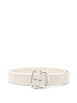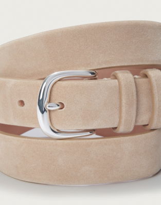 Made in Italy from soft suede leather this belt adds a soft feminine finish to outfits. In a versatile warm sandy shade it combines casual style with easy elegance. The sleek silver-coloured metal buckle has a clean modern look. Paired with jeans or tailored trousers or used to cinch in shirt dresses it's a versatile essential to elevate your look.