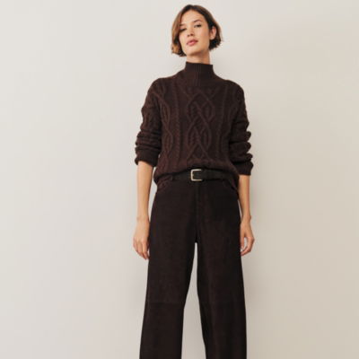 Leather trousers with a luxurious twist. Made from supple and strokably soft goat suede to create a rich texture and refined drape. These come in a casual-and-contemporary shape: wider through the thigh and gently tapering towards the ankle for a modern relaxed look. These are great for pairing with everything from plain casual tees to structured blouses. Classic four-pocket design with a zip-and-button fly.These trousers are made from genuine goat suede which has a luxuriously soft texture. Due to the delicate nature of the material we do not recommend hanging these with clip hangers.