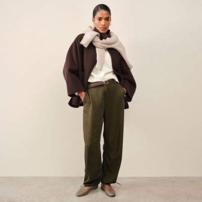 A relaxed casual trouser with a cool modern shape tapered towards the bottom and with elasticated cuffs to create gentle drapes around the ankle. Made from a fluid Lyocell fabric that has been treated to have a soft tactile and lived in finished - like a favourite pair of trousers from the first time you put them on.
