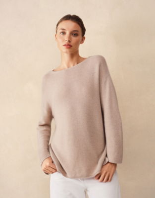 A wardrobe hero for days you want to throw on something cosy and easy. We love this jumper for the little feminine touches: the elevated links-links stitch the modern straight neckline and the relaxed dropped shoulders with bracelet-length wide sleeves. It's finished with minimalist touches - just a narrow rib around the hem and cuffs and small side splits so it sits neatly over trousers.