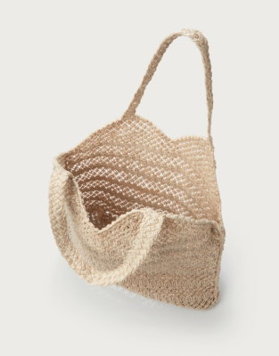 A simple accessory to hold the essentials - great for beach days holidays and sunny days out. This bag from The Jacksons is intricately hand-woven in Bangladesh from local jute. It has a round grab handle and fringe edges at the bottom for a playful touch.