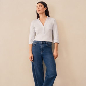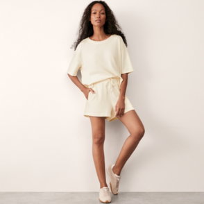 With a feminine wide V-neck and flattering short sleeves it's modern minimal and chic with a slight Parisian vibe.