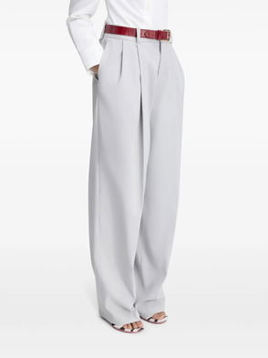 They've kept the styling refined and simple - invisible side pockets and streamline back pockets a flat waistband finished with ties in matching fabric and a curved hem to create the perfect drape.