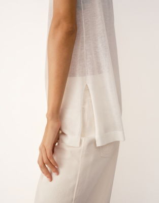 An easy light base layer ideal for warm weather and holiday wardrobes. This scoop-neck longline vest is intentionally transparent great to wear as a sheer layering piece. We especially love styling it with the matching long-sleeved top but it's a versatile option great over camisoles to create a relaxed contemporary feel.