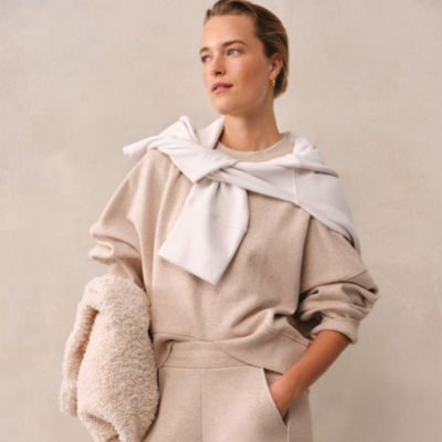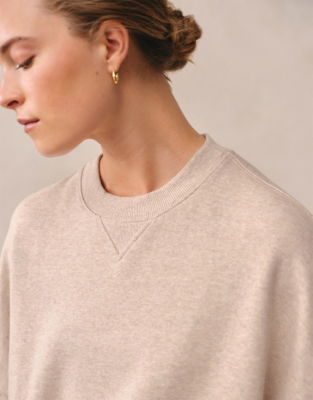 Relaxed and drapey this really is the ultimate oversized sweatshirt. It has a slouchy shape made easy to wear by the slightly cropped hem emphasised by the deep rib trims. Our Ultimate fabric is made from an organic-cotton blend for a warm reassuringly weighty feel and a peachy-soft touch. Deep dropped shoulders give it a lovely roomy look and the V detail at the neck adds a sporty touch.