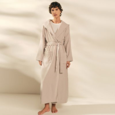 Luxuriously soft inside and out our bestselling robe has pure-cotton velour on the outside and absorbent cotton towelling inside. With a generous hood and patch pockets it will cocoon you in warmth.