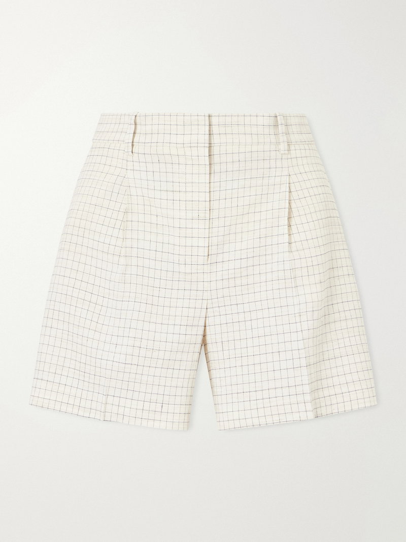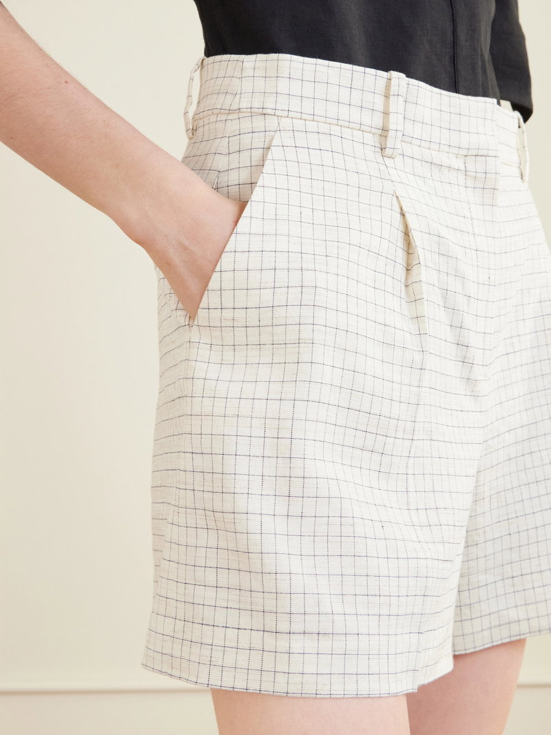 Theory’s designs are sleek, versatile, and effortlessly polished. These shorts are crafted from a linen-blend in a checked motif, sitting high at the waist with pleated, roomy legs. Pair them with a blouse and ballet flats for an elegant, refined look.
