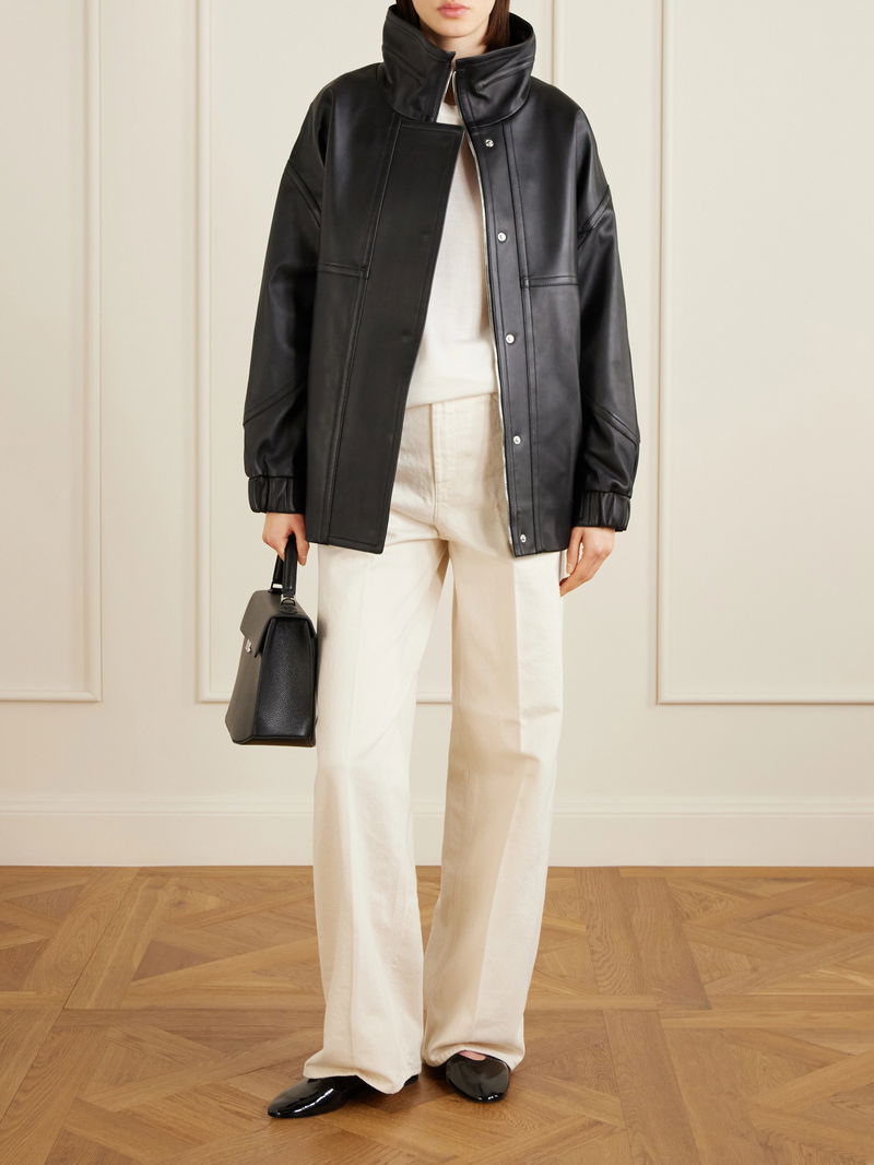 Theory's leather jacket is a staple you'll return to year after year - it will only get better with age. Made from soft lambskin for a loose fit, it's defined by elasticated trims and a concealed placket that adds to the sleek finish.