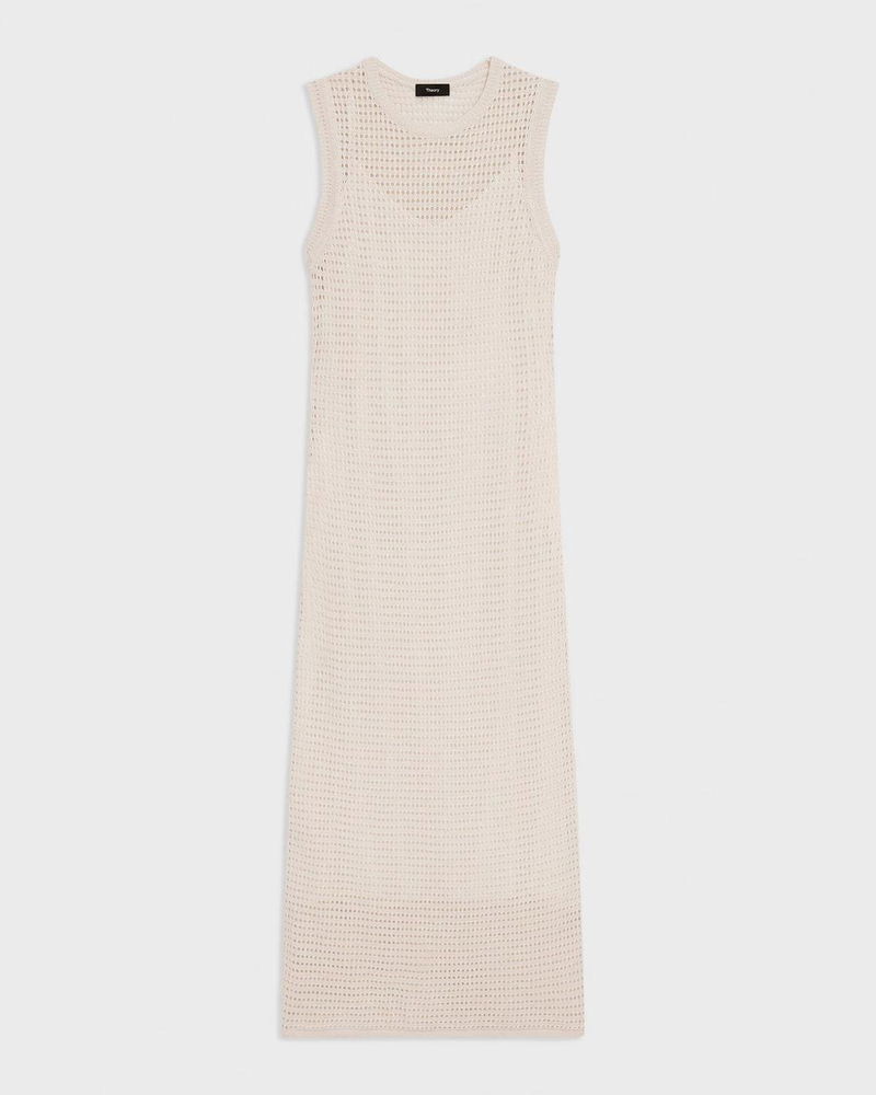 Featuring an interior slip, this airy dress is designed along a crew neckline and a slim silhouette. Crafted with a pointelle knit mesh from a premier Italian mill, this sleeveless style is composed of linen and viscose made from wood pulp sourced from certified responsibly managed forests.