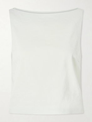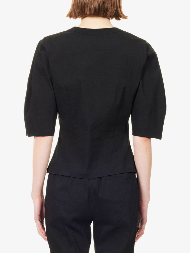 Made with at least 50% linen. Linen is made from the fibres of the flax plant. Flax is resilient and can grow in poor soil, using less water than cotton to produce.'