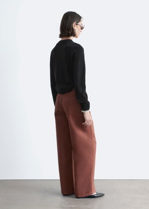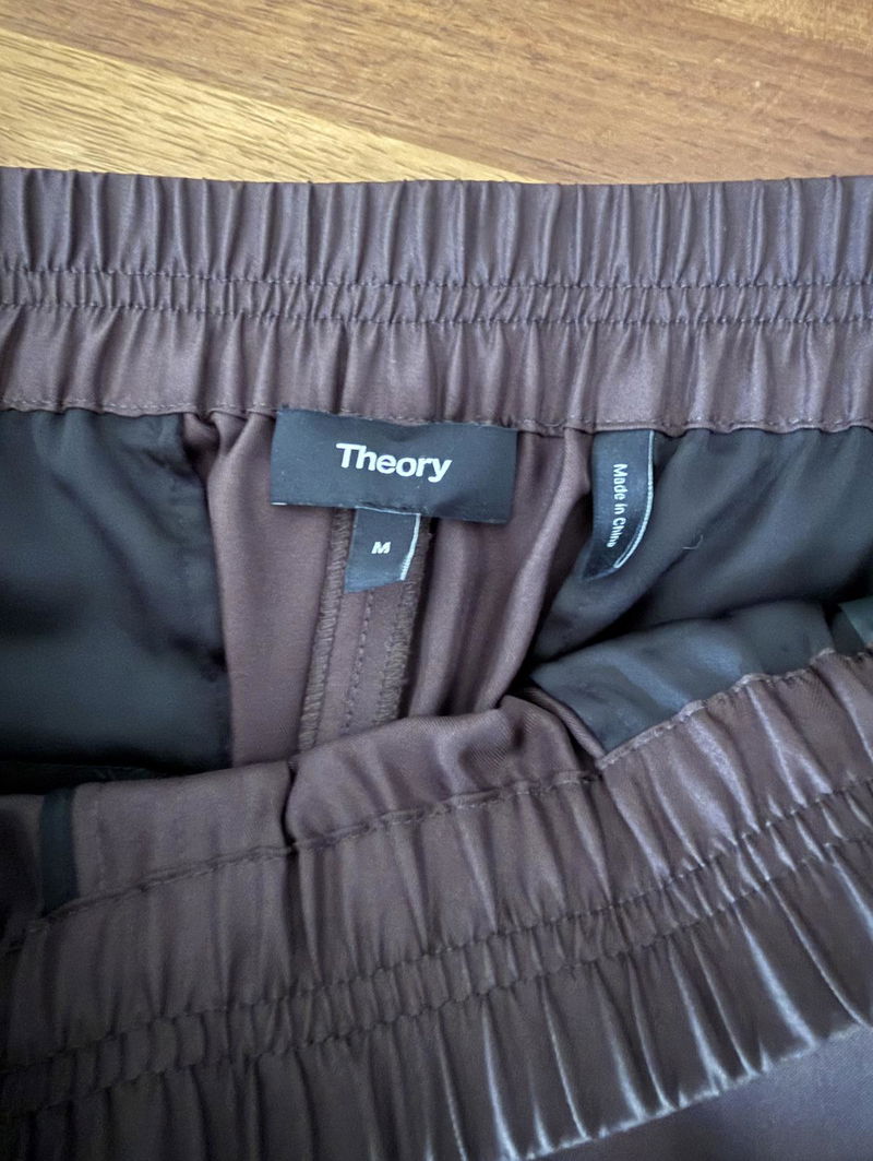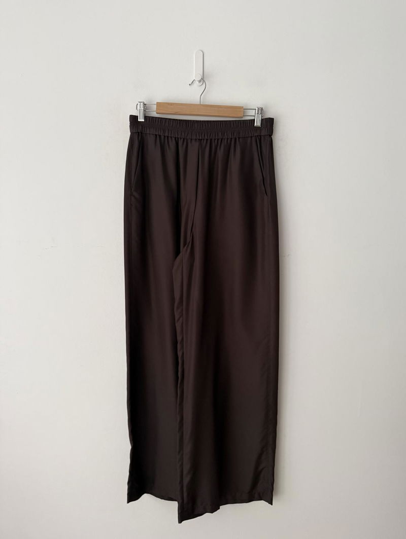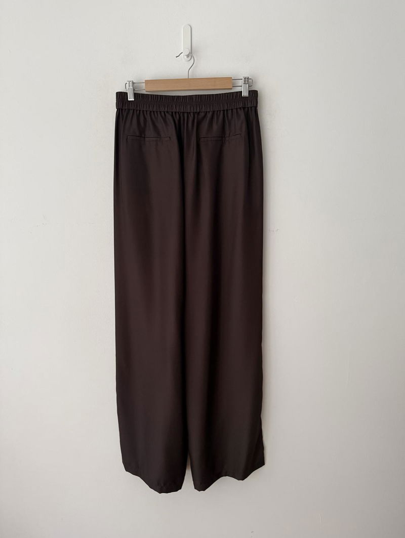 Wide leg silk trousers with an elasticated waist.