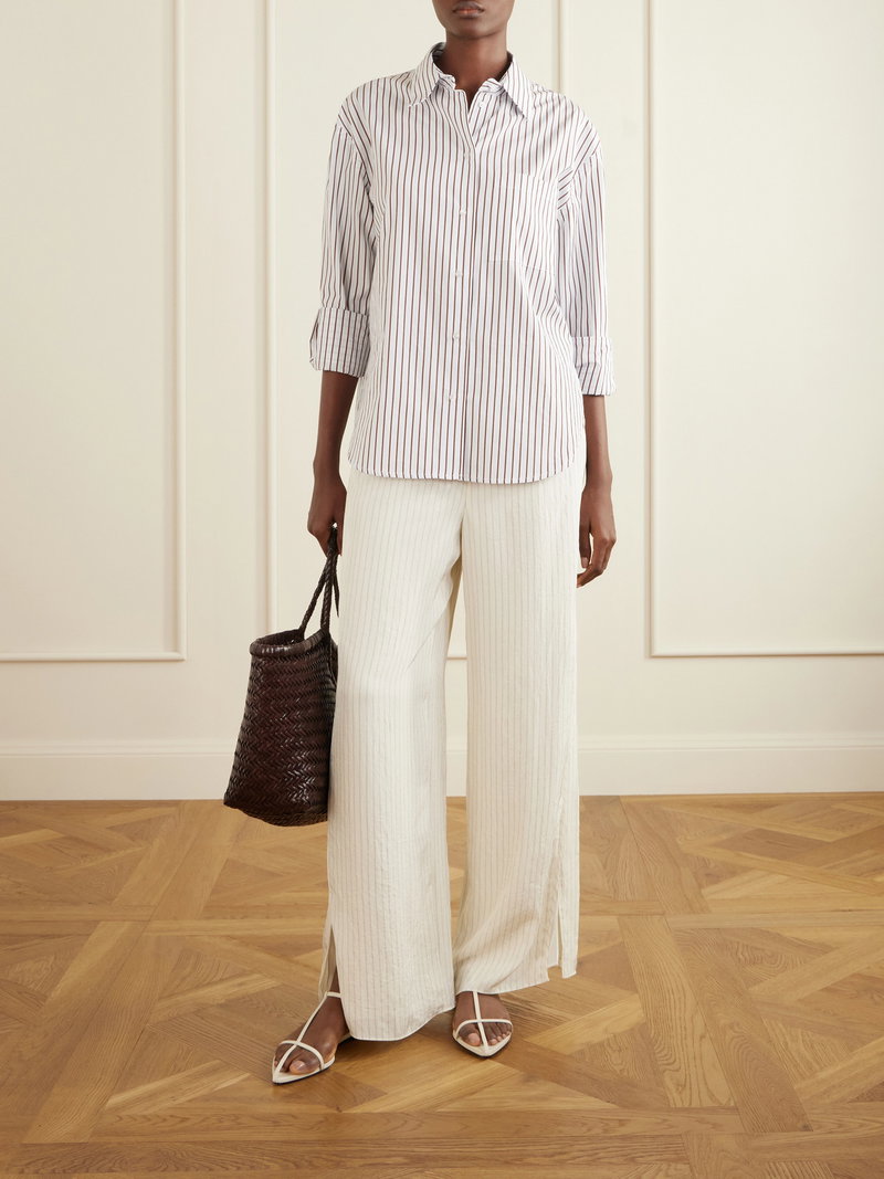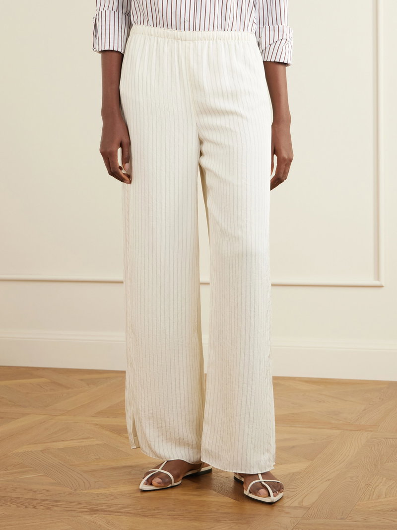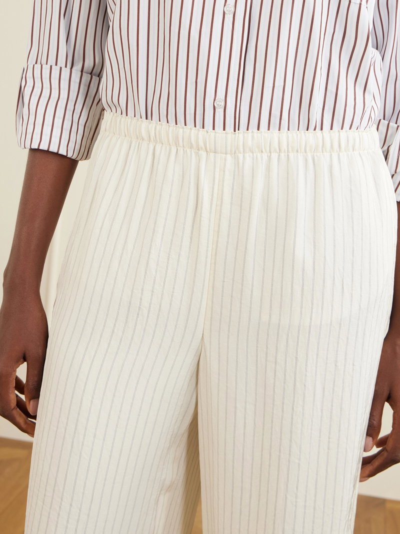 Theory's pants are cut in a straight-leg silhouette with an elasticated waistband for ease. Designed in a soft pinstripe, they offer a relaxed, easy fit through the leg. Style them with a simple knit or shirt.