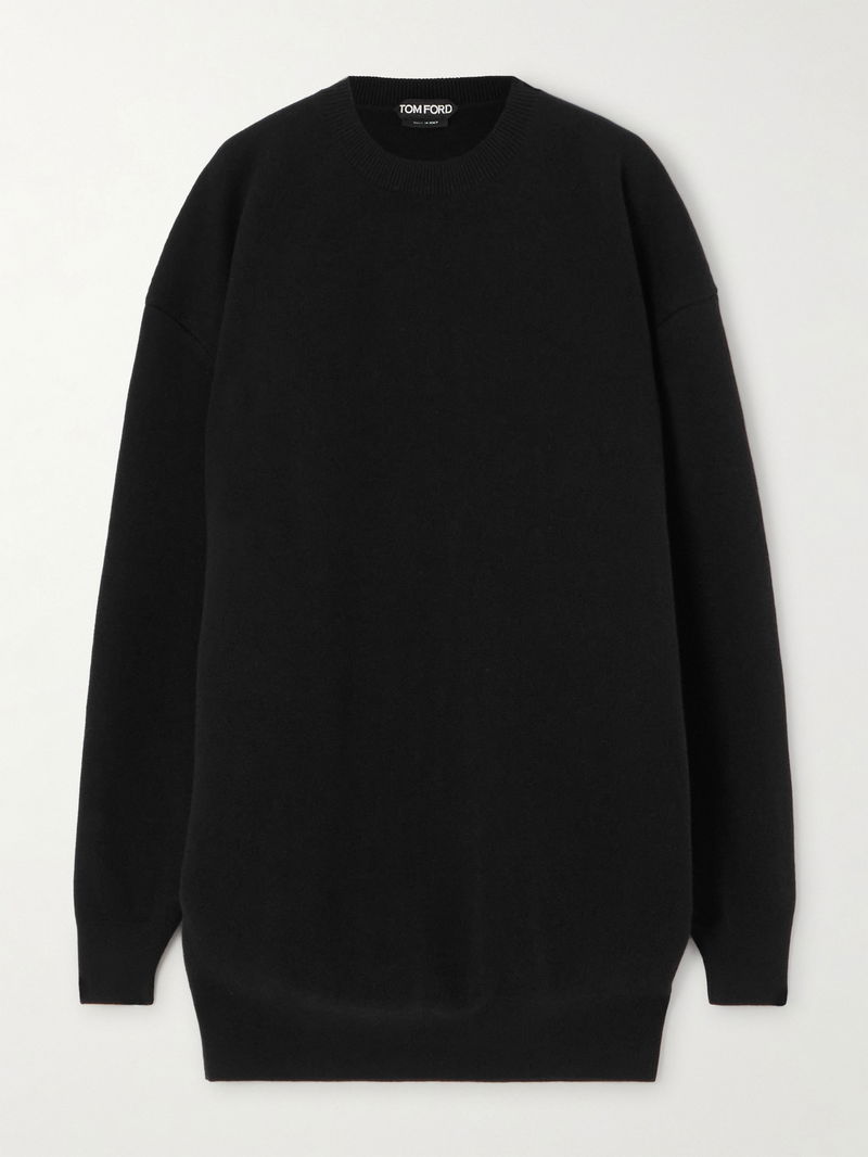TOM FORD's dress is knitted from wool-blend with a touch of cashmere - structured and double-faced, it folds nicely at the sculptural sleeves. It's laid-back in the chicest way.