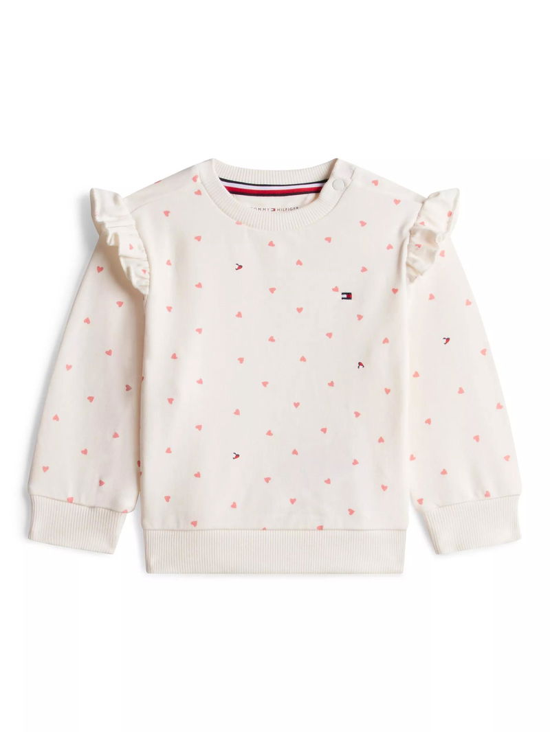 Baby Cotton Blend Heart Print Sweatshirt, White Natural