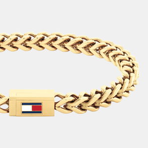 Braided from brown leather, this bracelet from Tommy Hilfiger is finished with a stainless steel clasp and iconic flag detail.