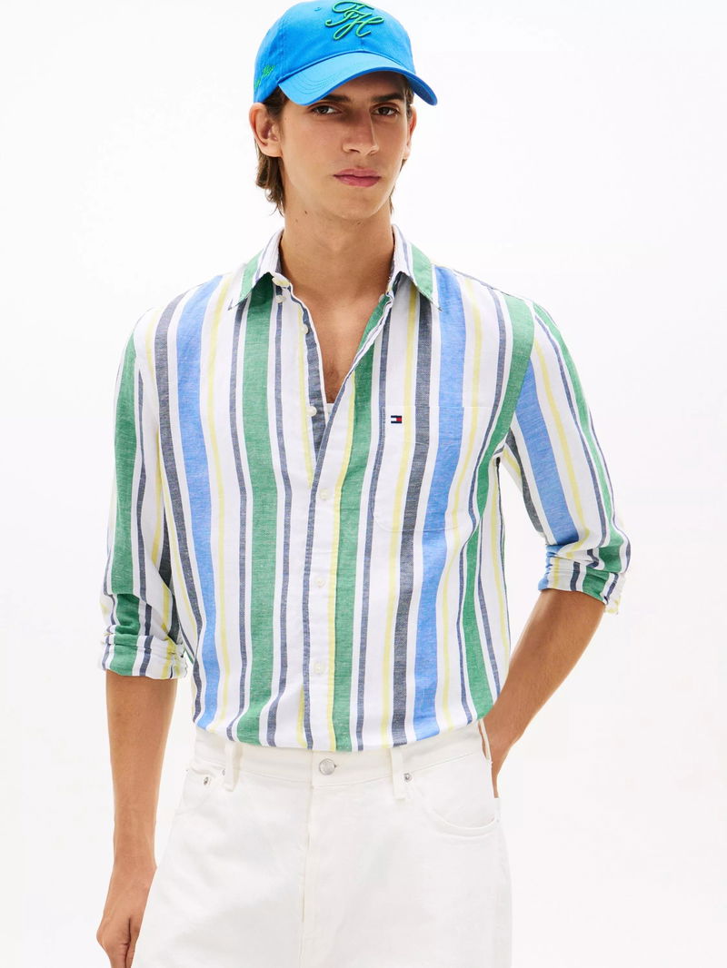 Cotton Blend Regular Fit Stripe Shirt, Multi