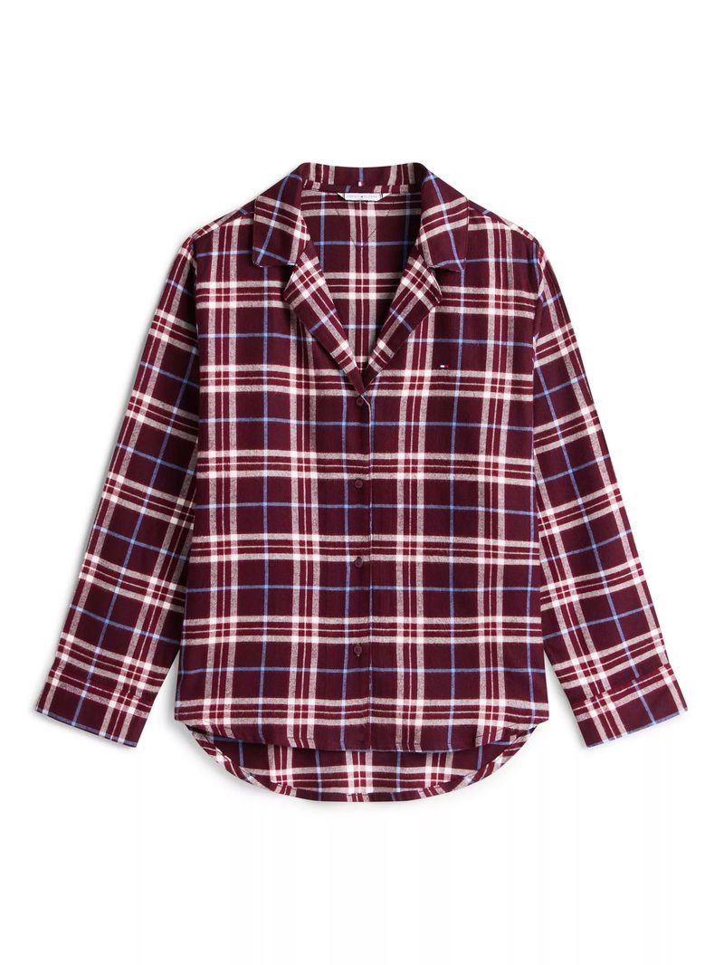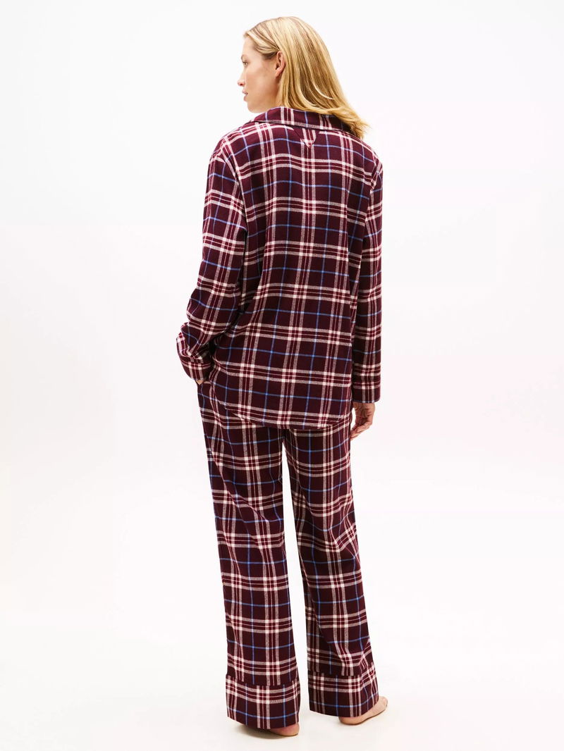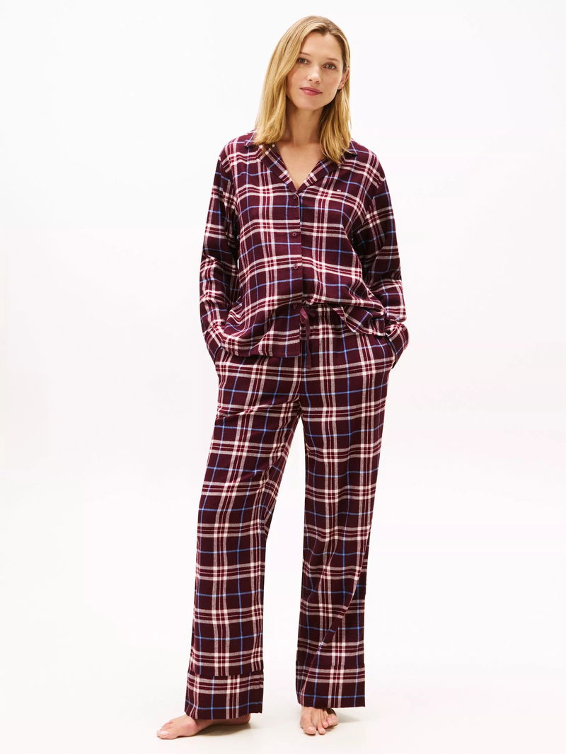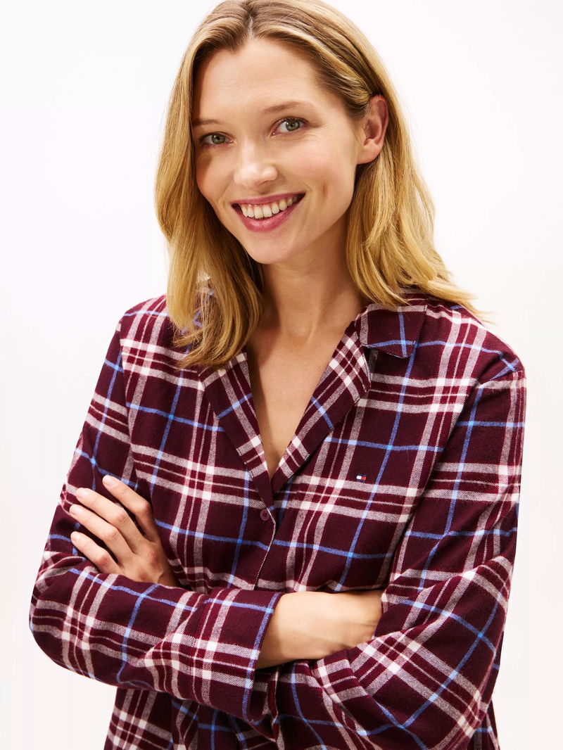 This pyjama set is crafted from cotton-blend flannel for a restful sleep. The shirt has notched lapels, cuffed sleeves and a rounded hem. The bottoms have an elasticated, contrast drawstring waist. Tommy Hilfiger branding is throughout.