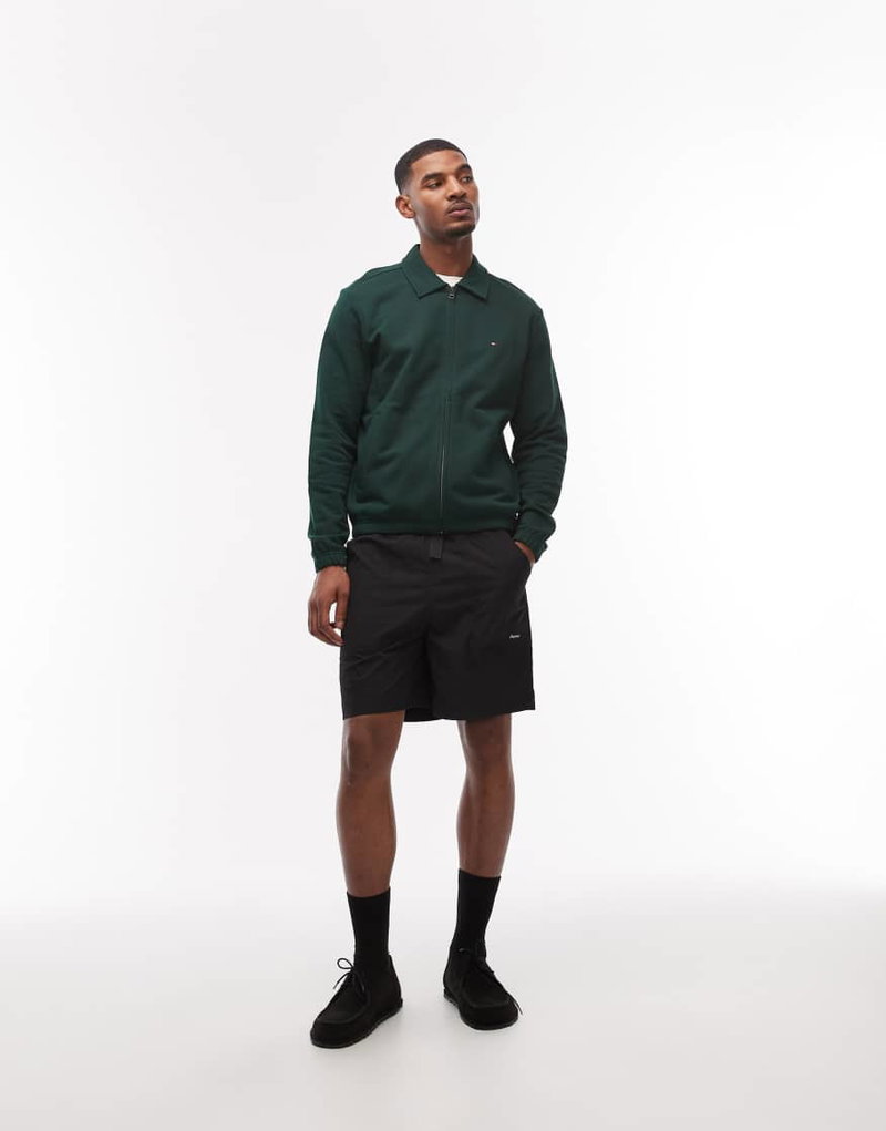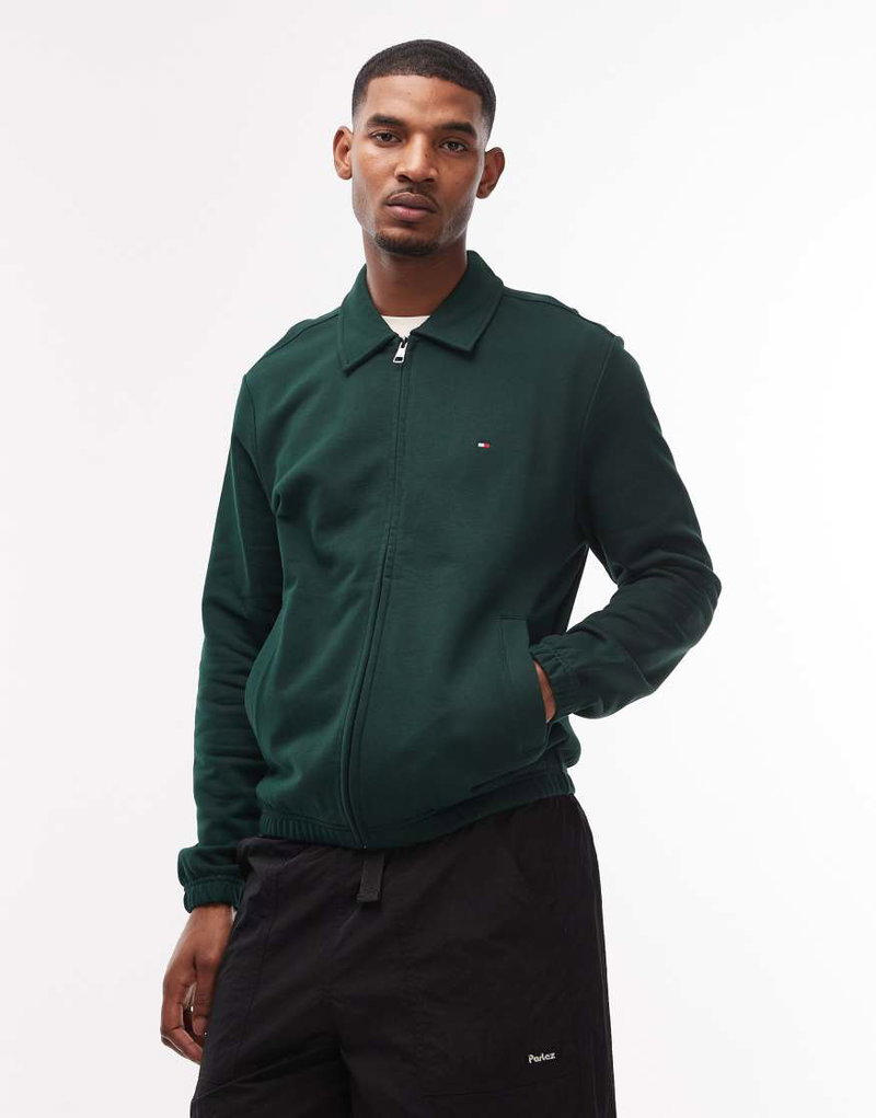 Essential Terry Zip Up Sweatshirt In Dark Green