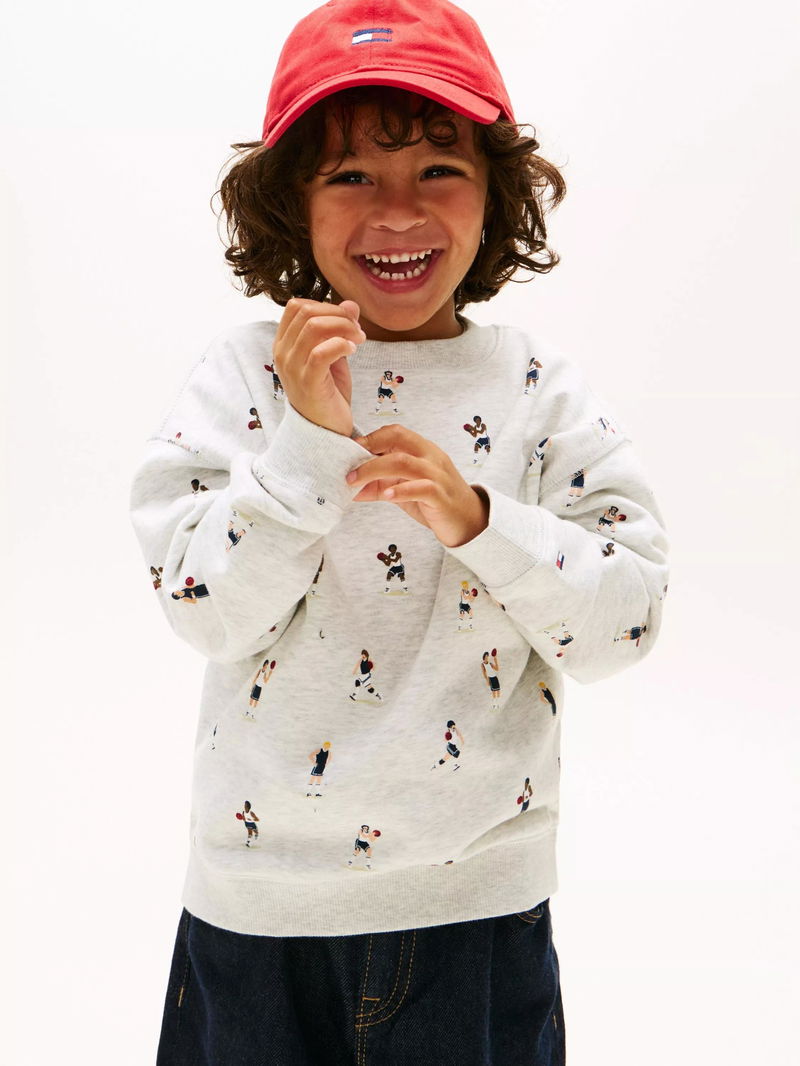 Kids' Basketball Print Cotton Blend Sweatshirt, Light Grey