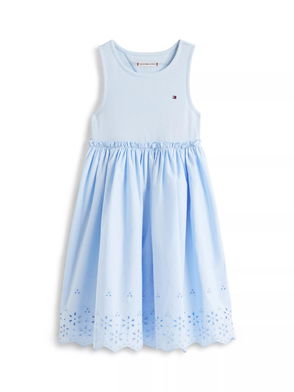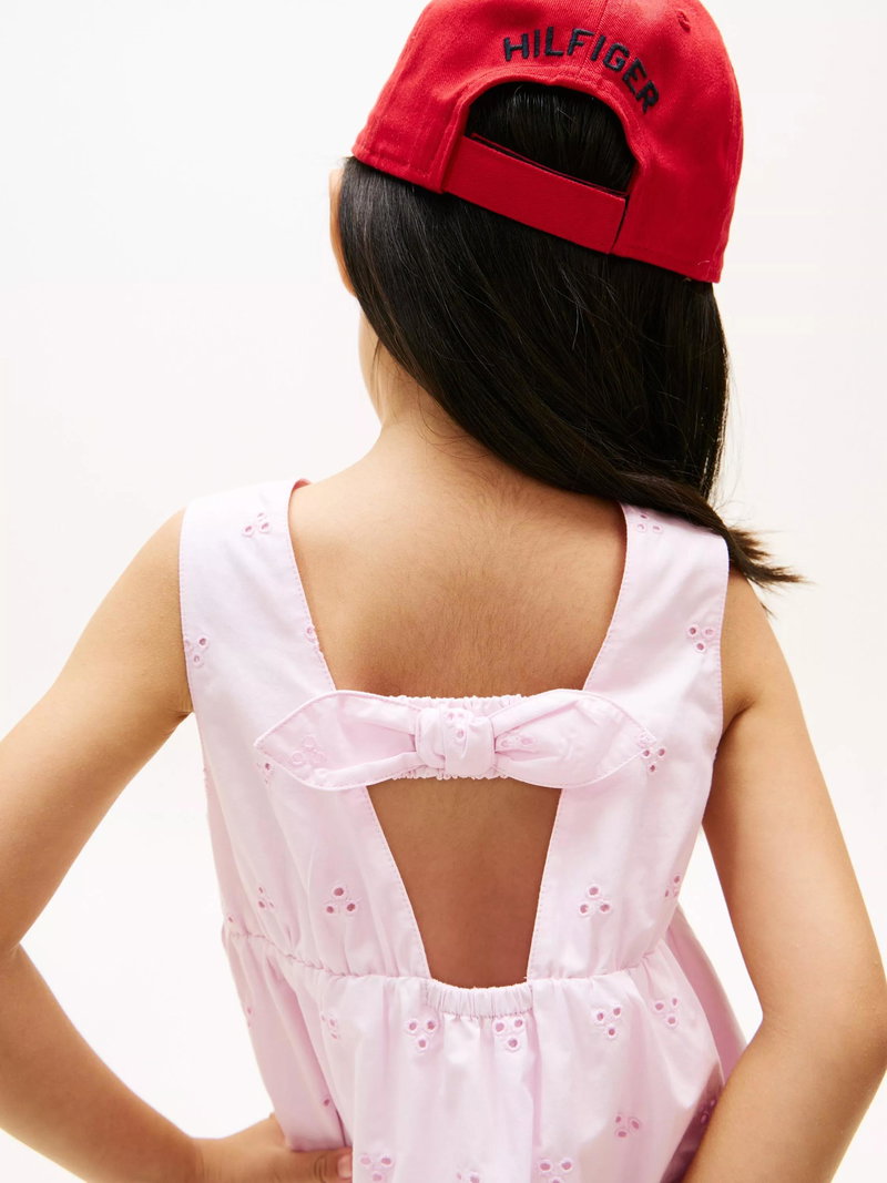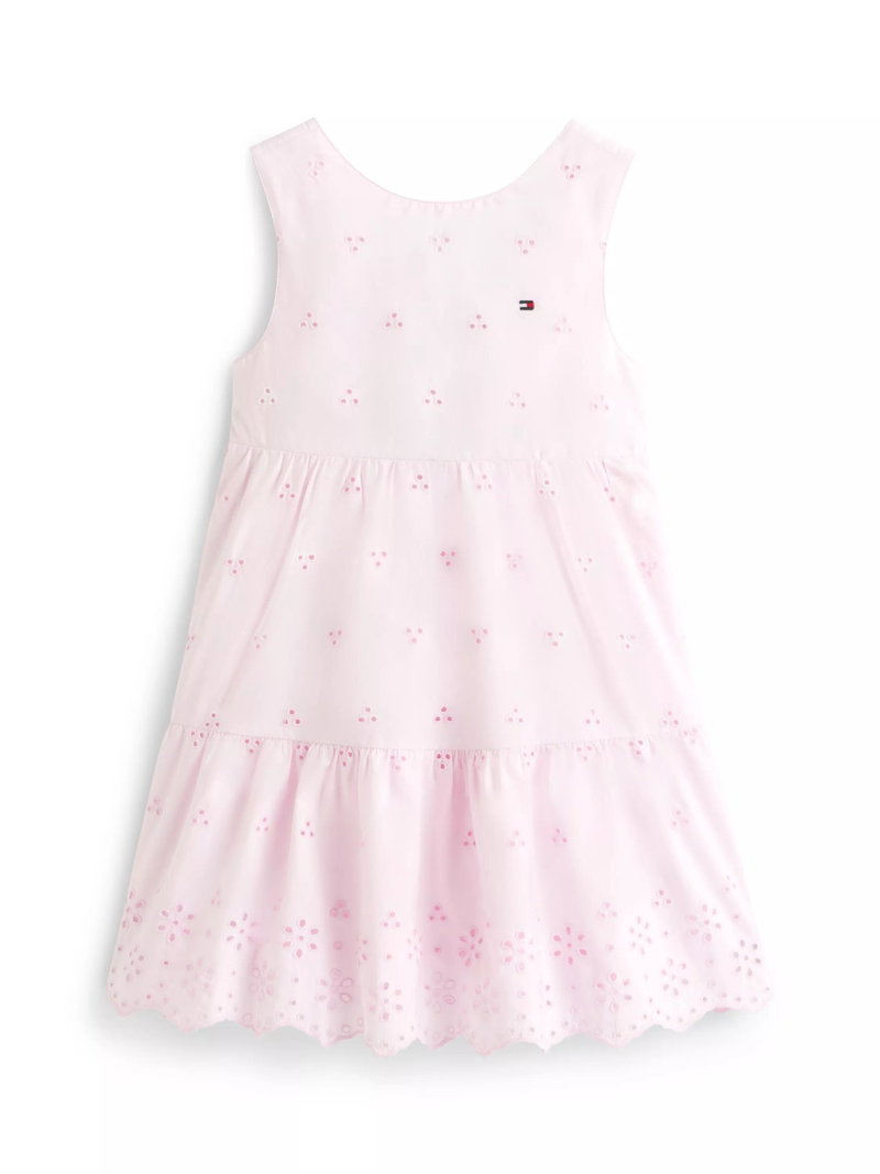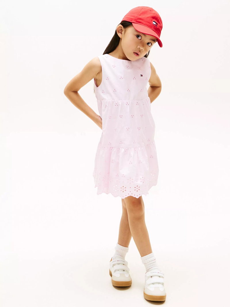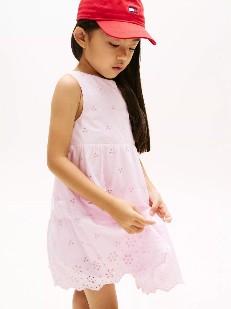 Kids' Broderie Anglaise Embroidered Mini Dress, Light Pink