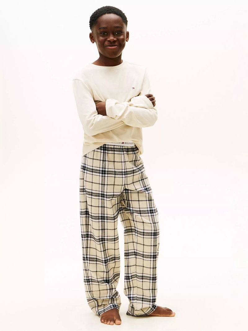 Kids' Cotton Flannel Long Sleeved Pyjamas, Newsprint/Tartan