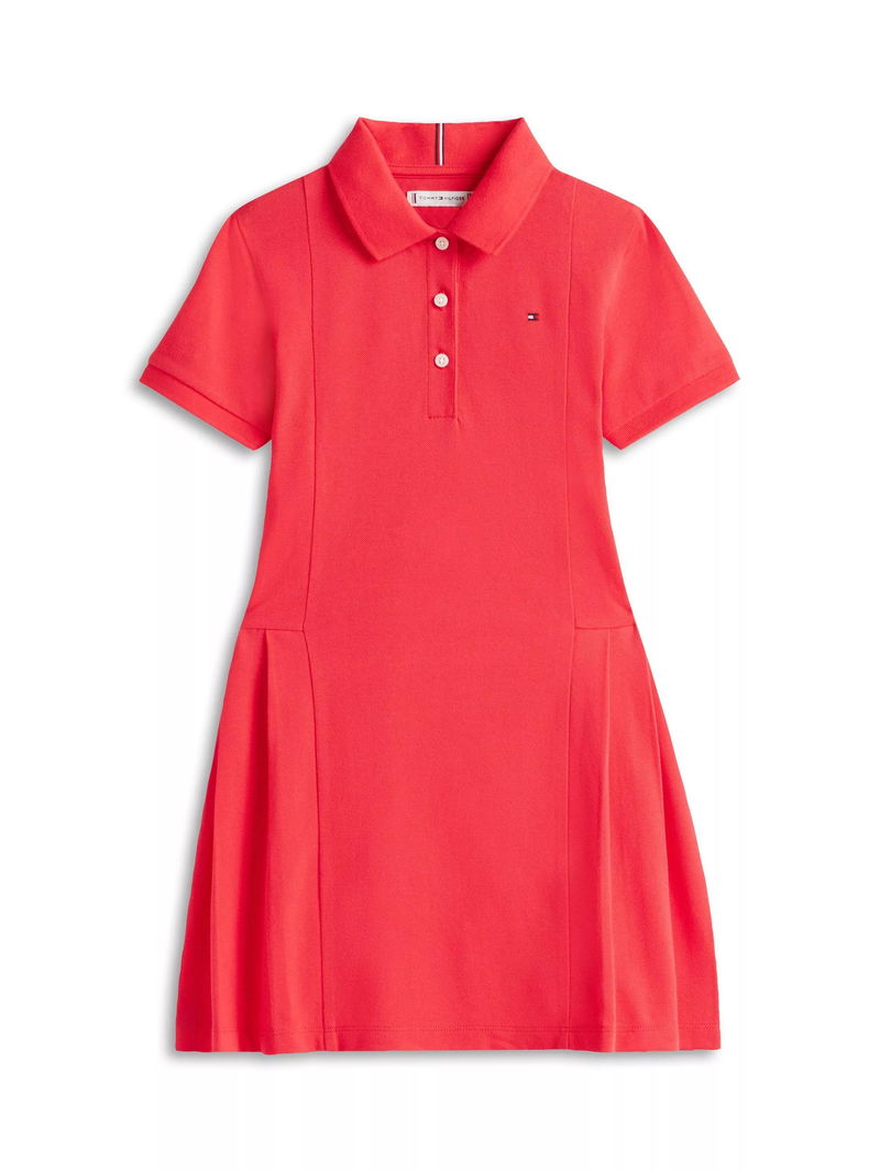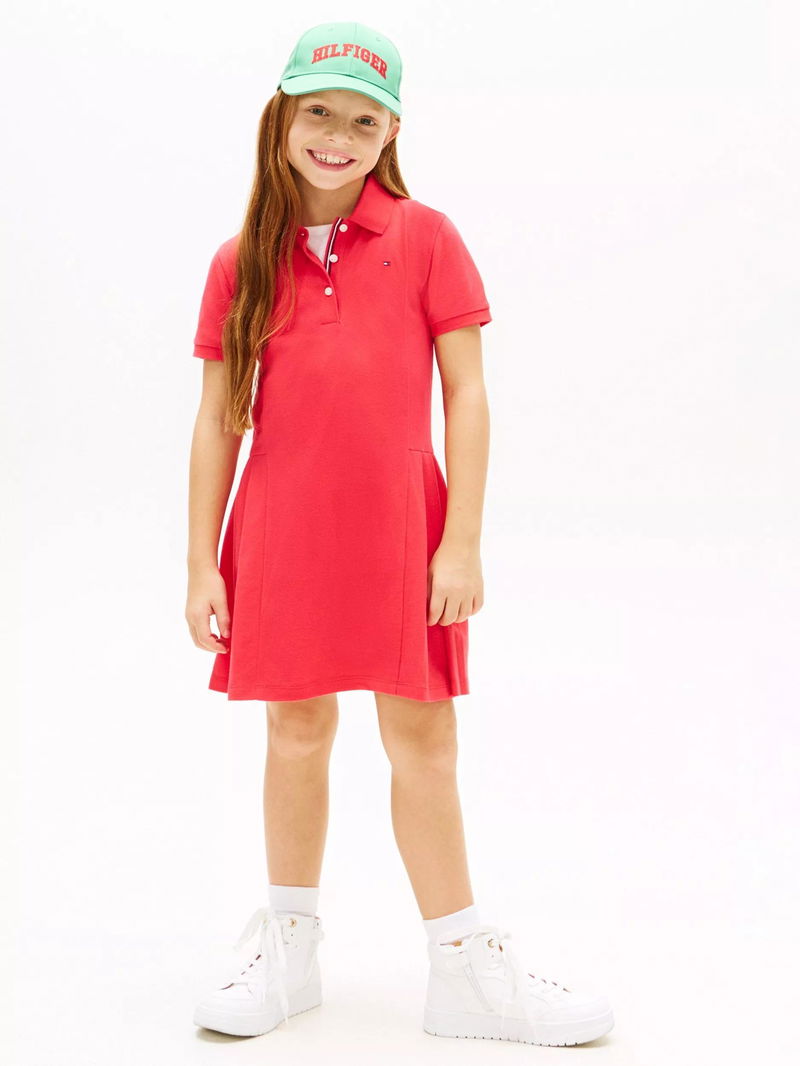 Kids' Cotton Short Sleeved Mini Polo Dress, Bright Red