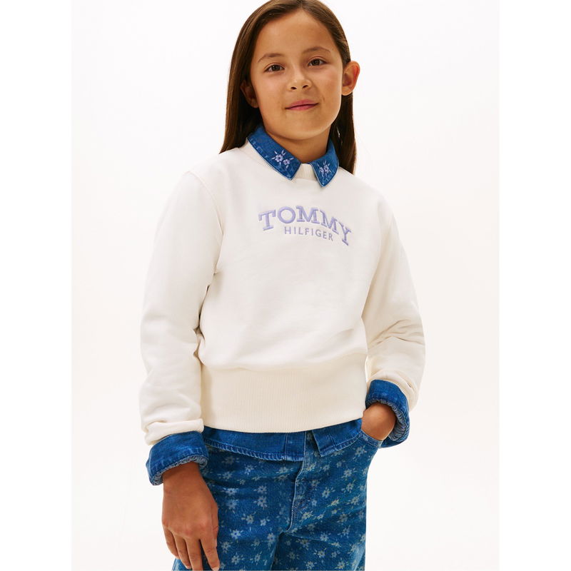 The Tommy Hilfiger Kids' Crew Sweatshirt features a classic crew-neck neckline for straightforward styling. The design maintains a clean profile without excess detail.