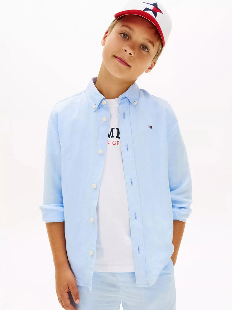 Kids' Relaxed Linen Blend Shirt, Light Blue