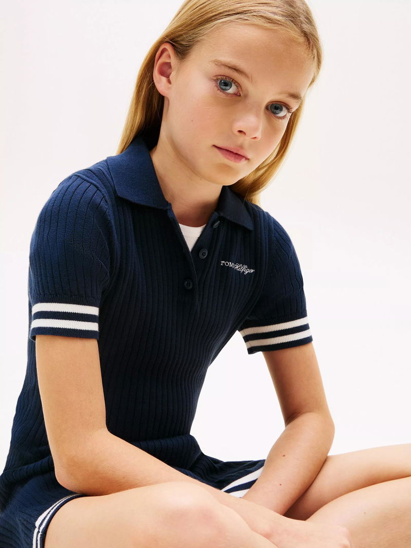 This mini jumper dress features a sporty polo-inspired design with script logo embroidery and a soft cotton-blend fabric. Offering all-day comfort and a standout look for any casual setting.
