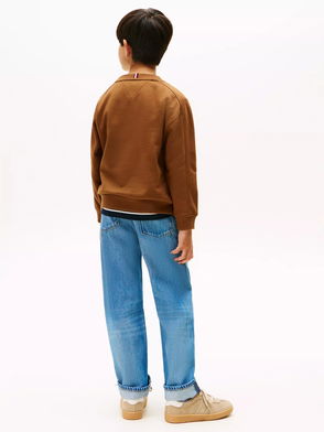 Tommy Hilfiger's Kids' Varsity Crew-Neck Sweatshirt delivers classic collegiate style with brand detailing. The relaxed fit offers comfortable casual everyday wear for children, finished with ribbed trims and crew-neck design for a secure fit.