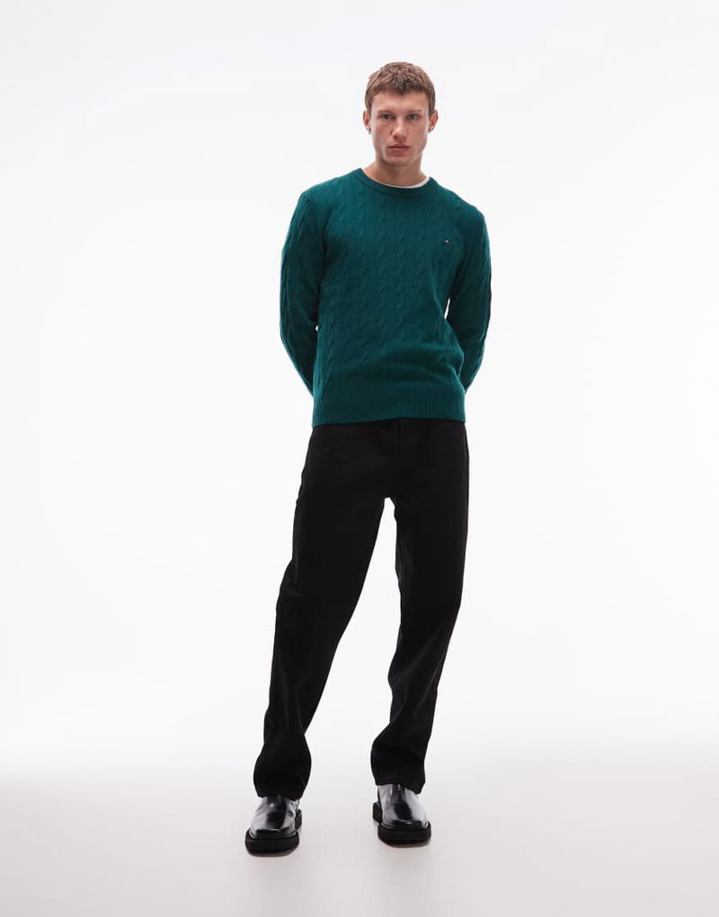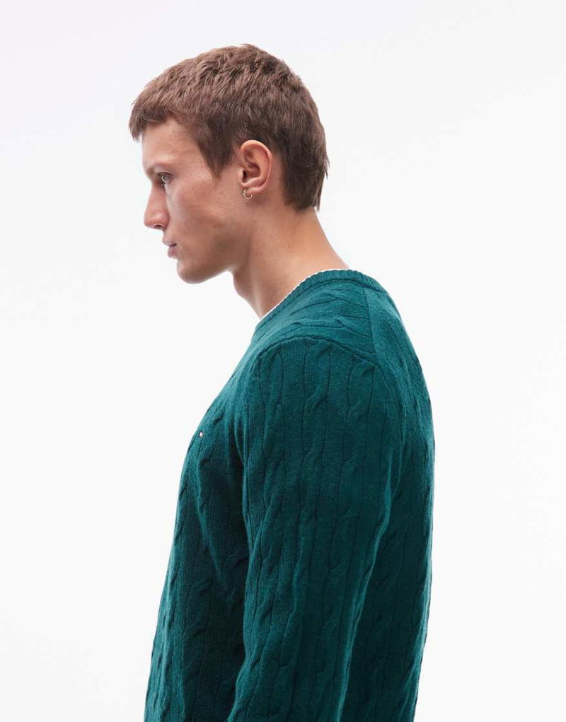 Lambswool Cable Knit Jumper In Dark Green