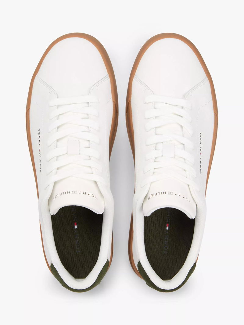 Leather Blend Logo Court Trainers, Ecru/Multi