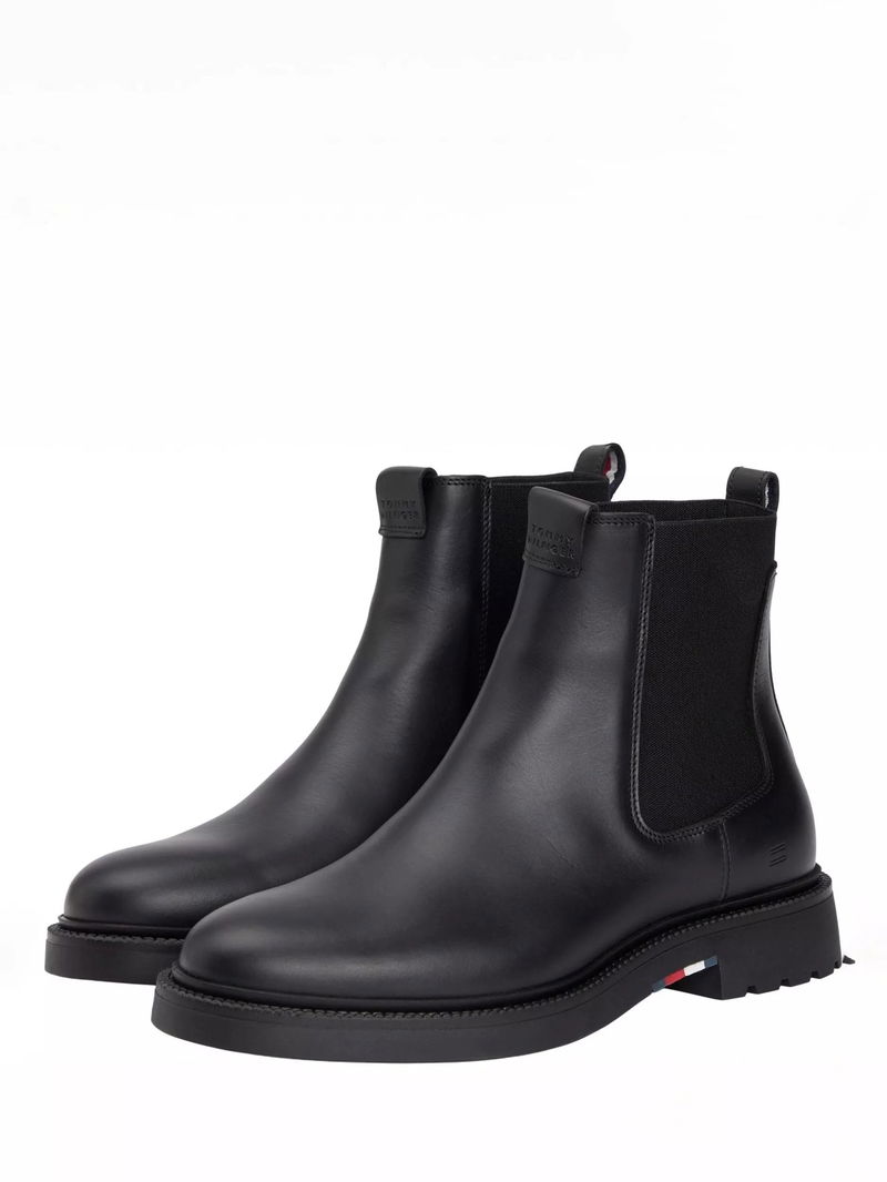 Leather Chelsea boots by Tommy Hilfiger, featuring an almond toe and slip-on design. The sturdy rubber sole offers comfort and durability, making them your reliable companion wherever you go.