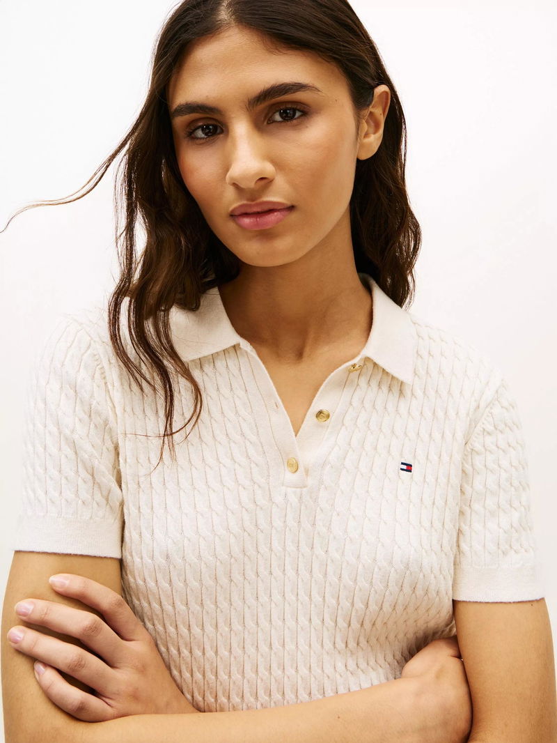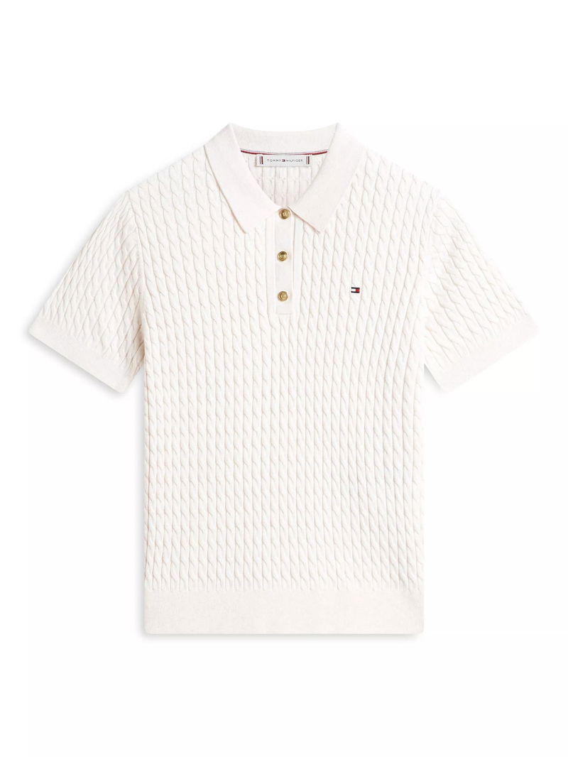 Logo Cable Knit Top, Heather Ivory Petal