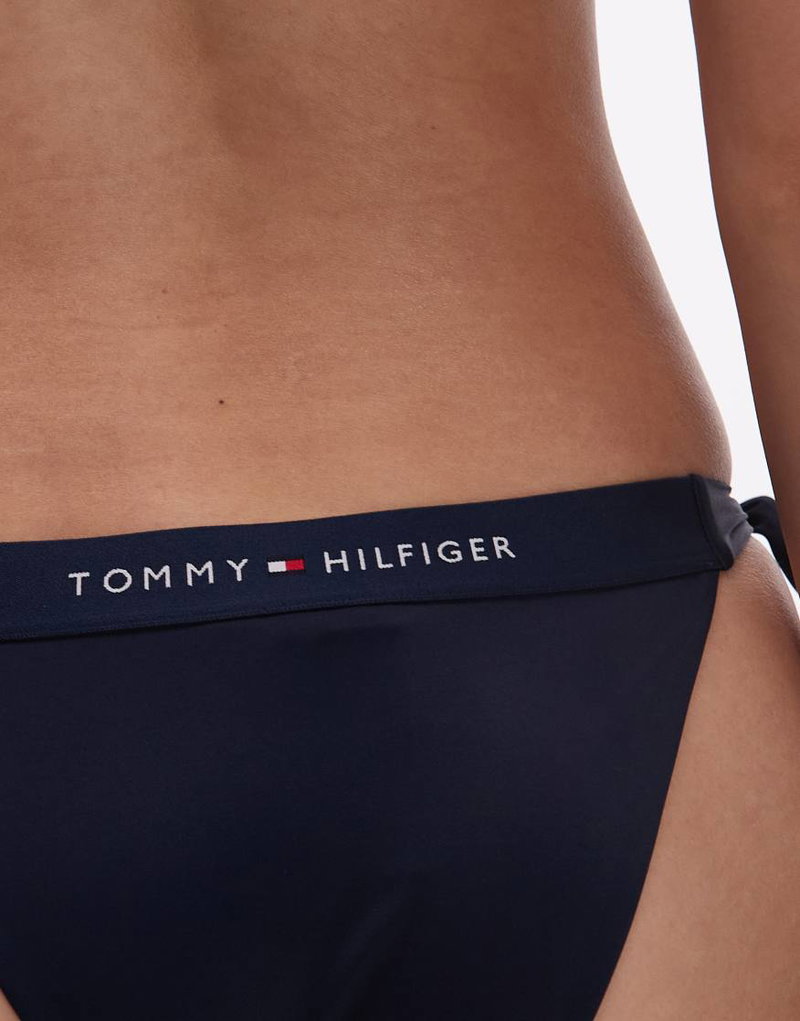 Logo Waistband Tie Side Bikini Bottoms In Dark Navy