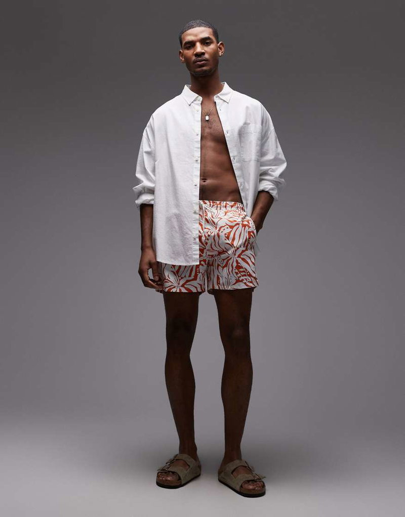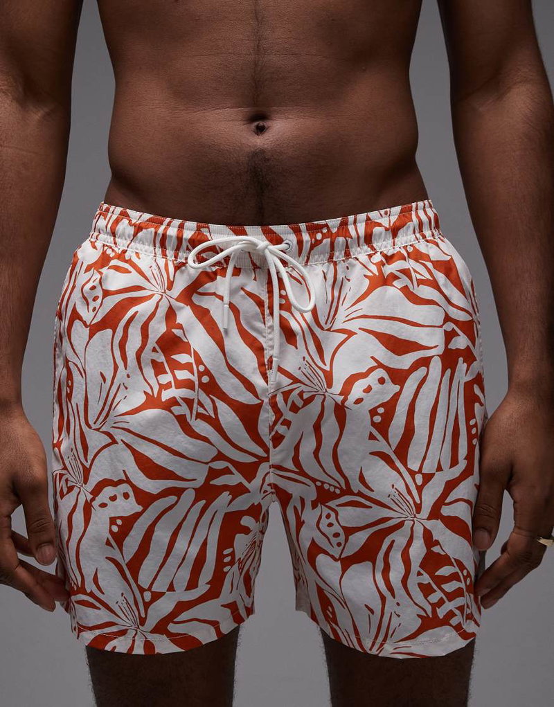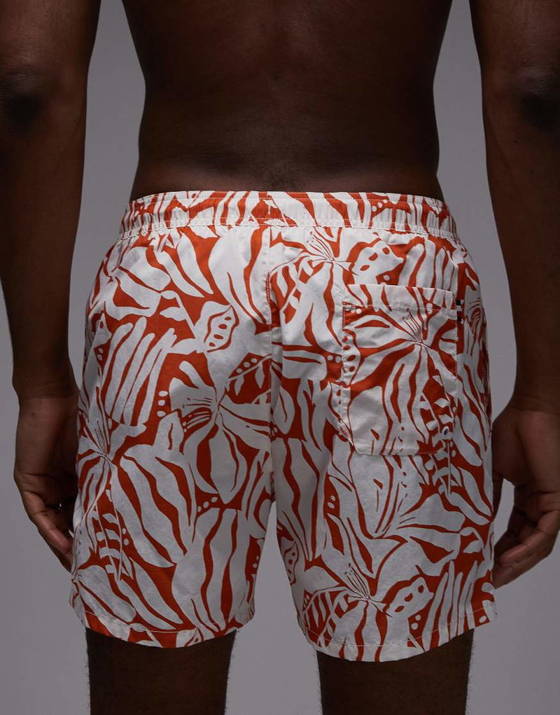 Resort Drawstring Swim Shorts In Orange Floral