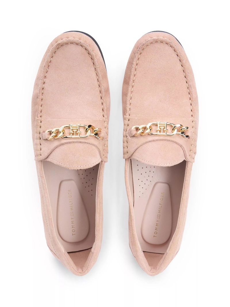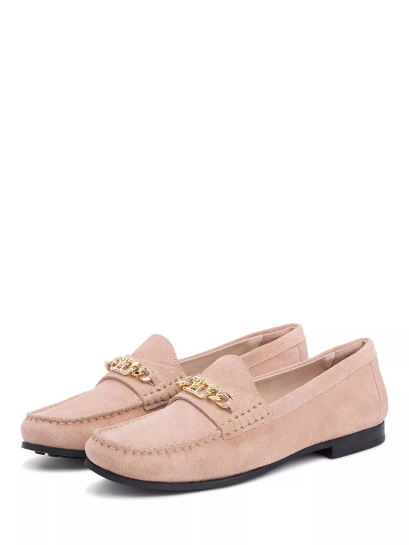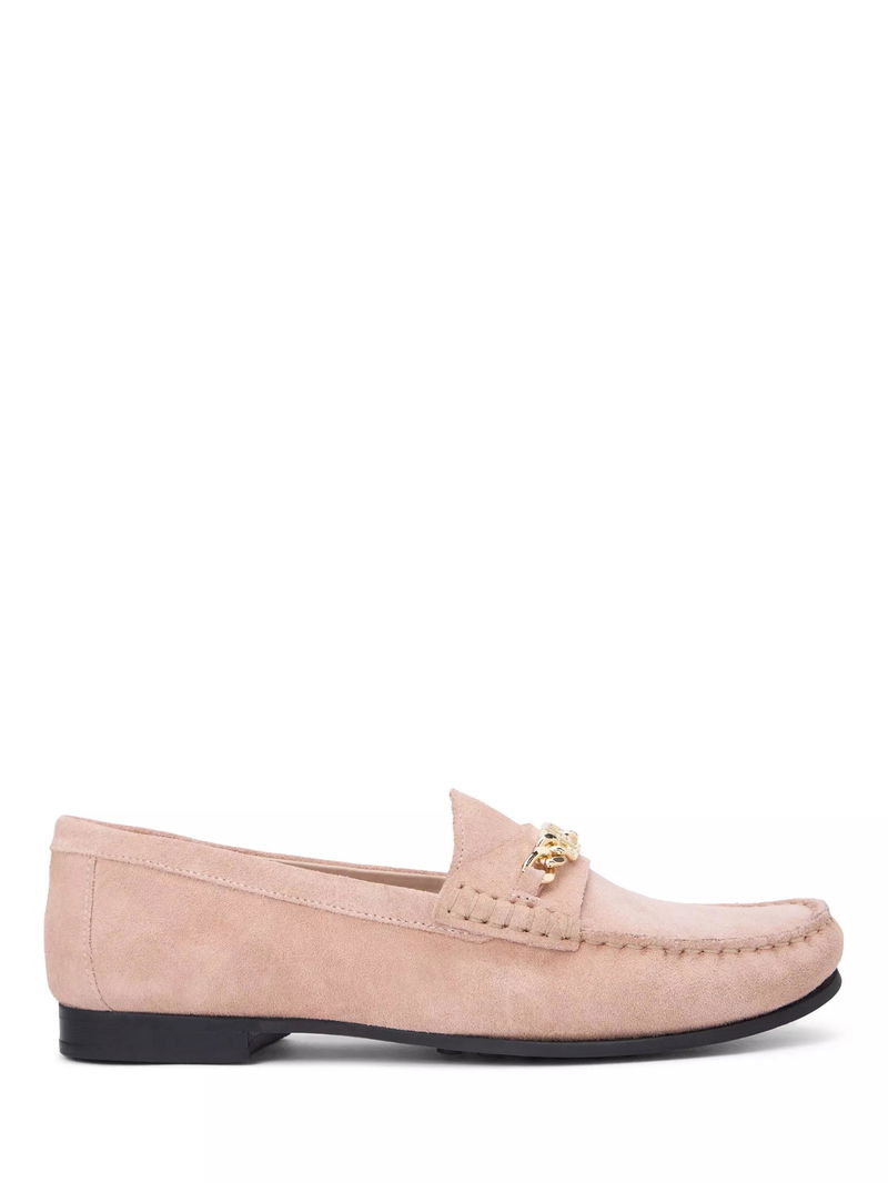 Suede Chain Penny Loafers, Pink