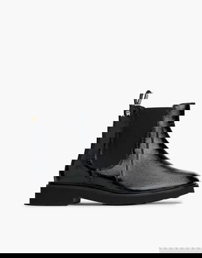 Th Monogram Plaque Leather Mid Boots In Black