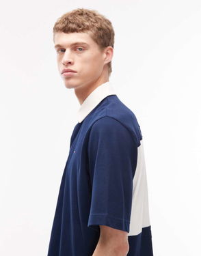 V-neck Pique Relaxed Fit Polo Shirt In Navy