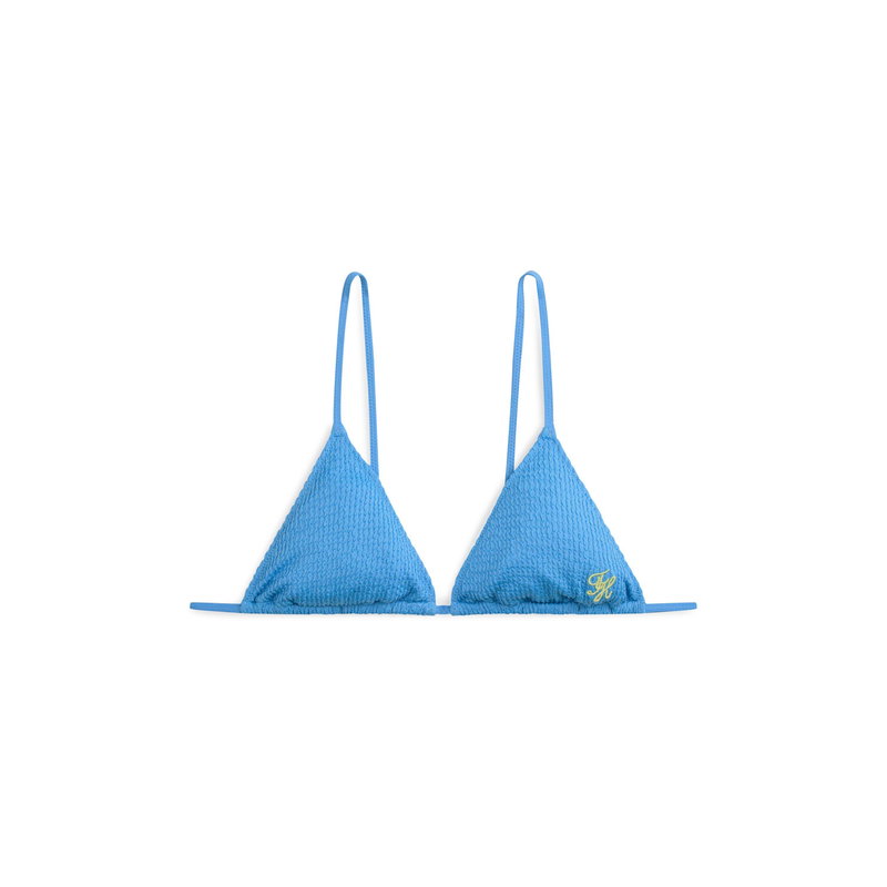 The Tommy Hilfiger Women's Triangle Bikini is cut in a classic triangle shape. The crinkle fabric gives the design texture and movement.