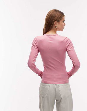 Badge Rib Long Sleeve Stripe T-shirt In Bright Pink
