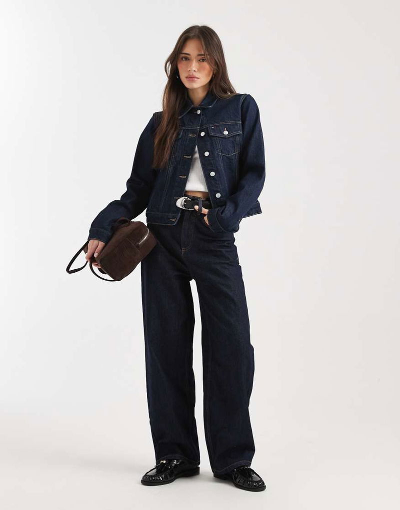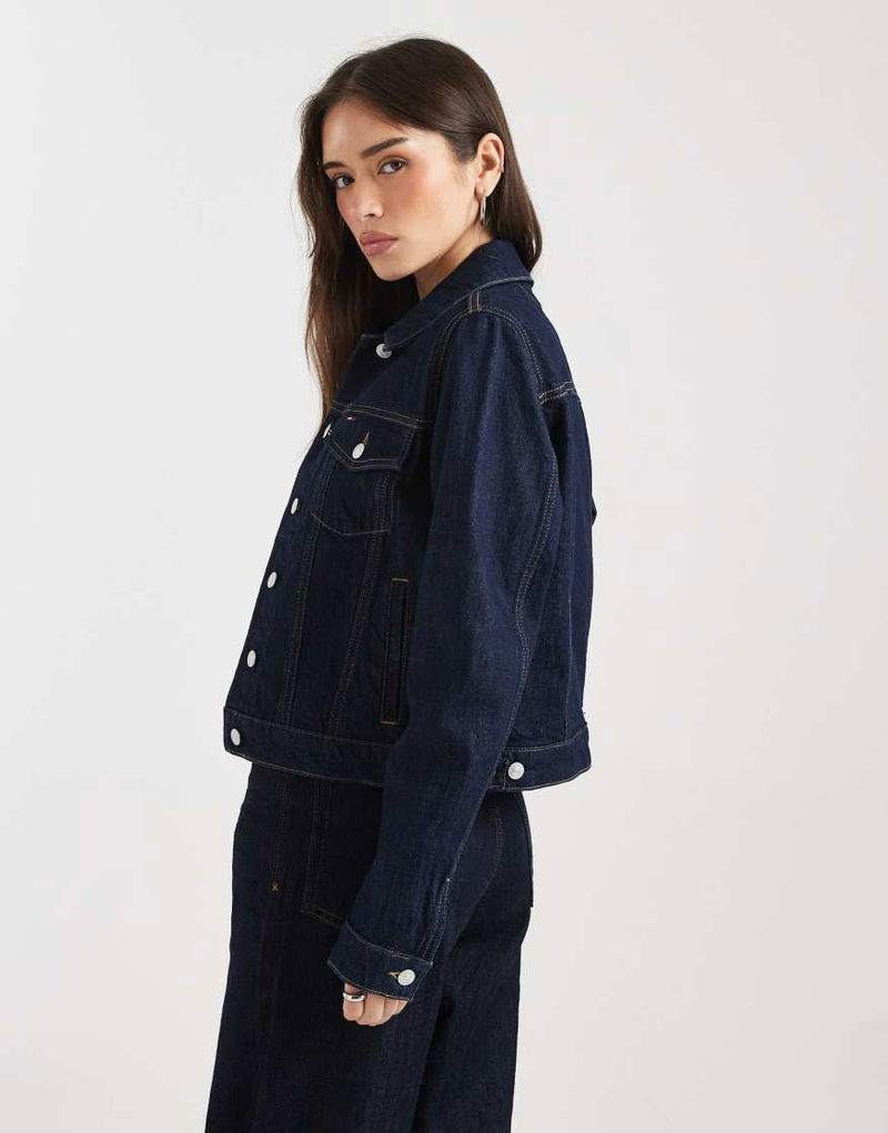 Classic Denim Trucker Jacket In Dark Wash Blue