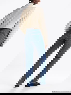 Mid Rise Slim Straight Leg Jeans In Dark Blue